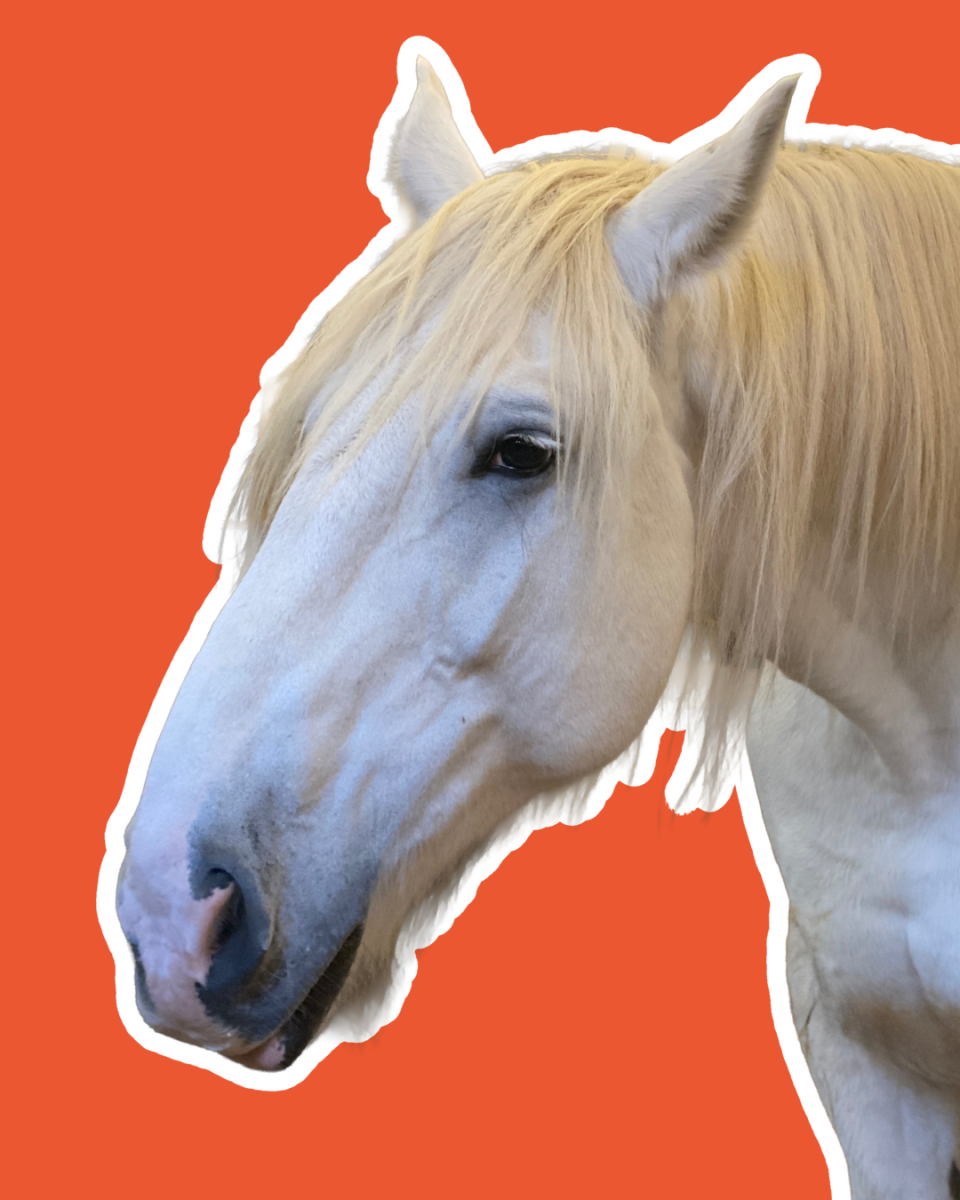 Faust est surnommé « la commère » parce qu’il garde toujours la tête dehors, observant tout ce qui se passe dans l’écurie. Il veut tout voir, tout suivre, et il attrape souvent ce qui passe à portée de son nez (casquettes, sacs, etc.). Il est curieux, joueur… et un peu fouineur, d’où son petit surnom !
